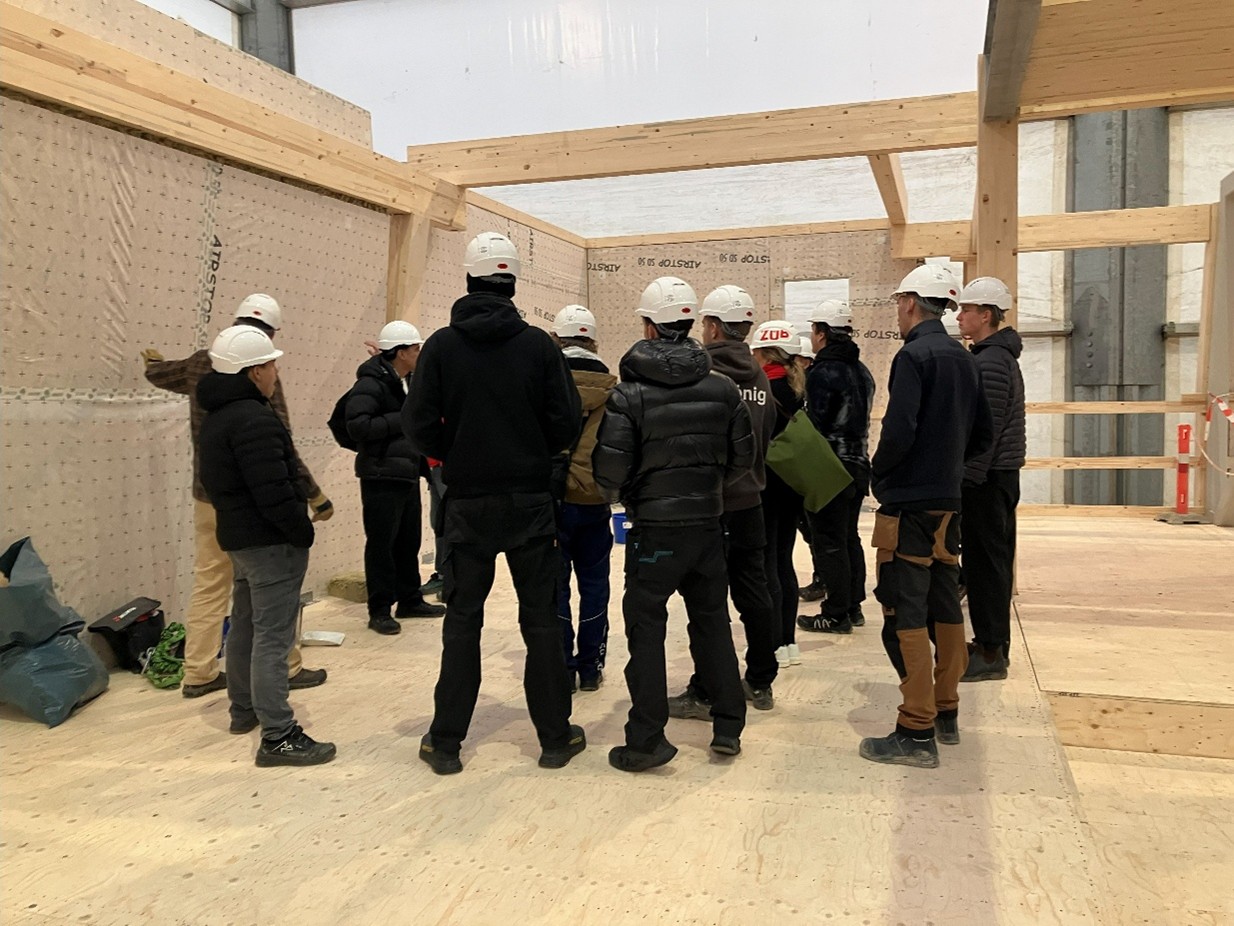 På billedet ses et besøg for Tømreruddannelsen, som er en del af Next Erhvervsuddannelse, på byggepladsen til Tiny Church. I deres feedback har lærerne vist interesse for at forsætte samarbejdet om nye projekter.