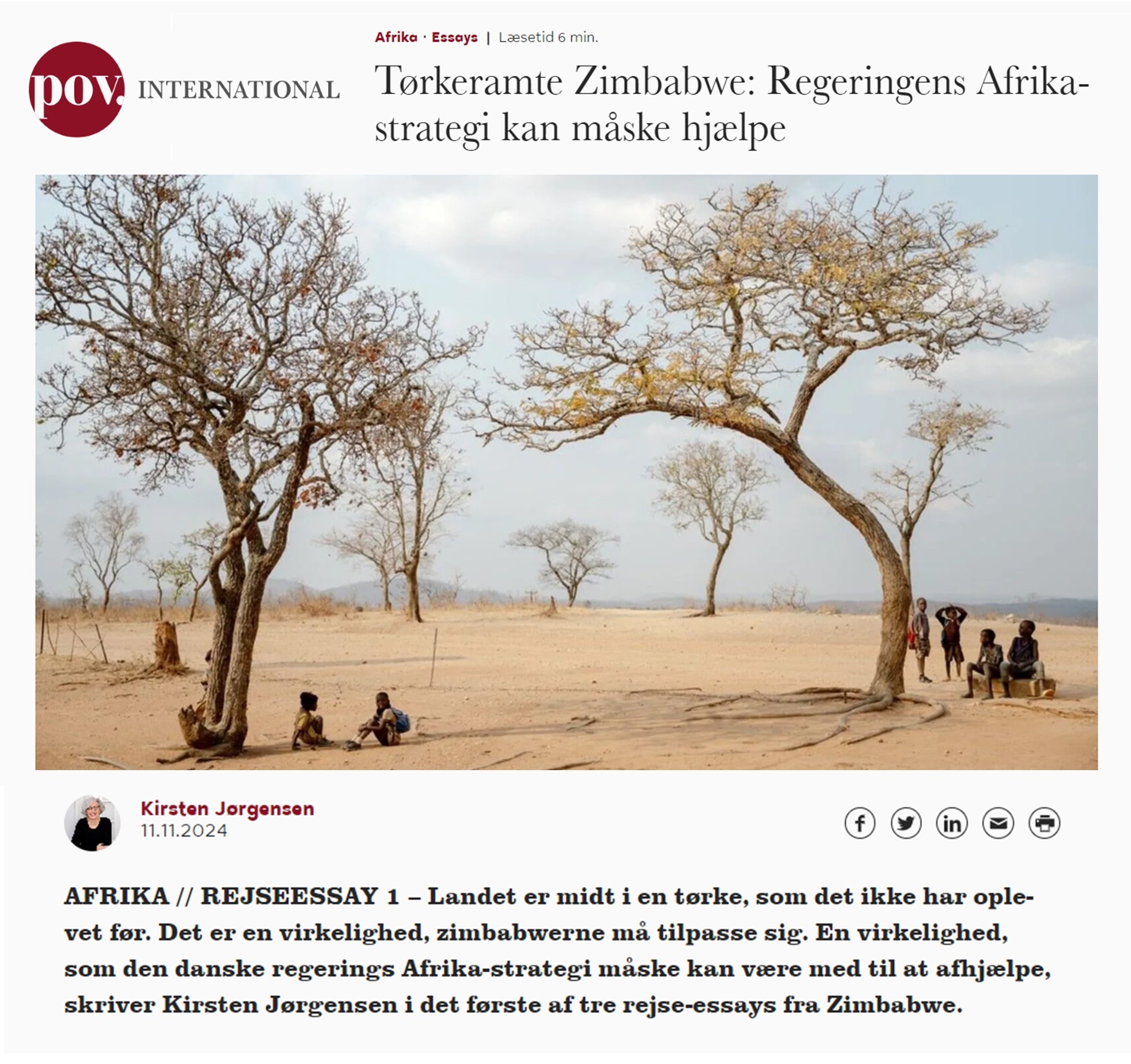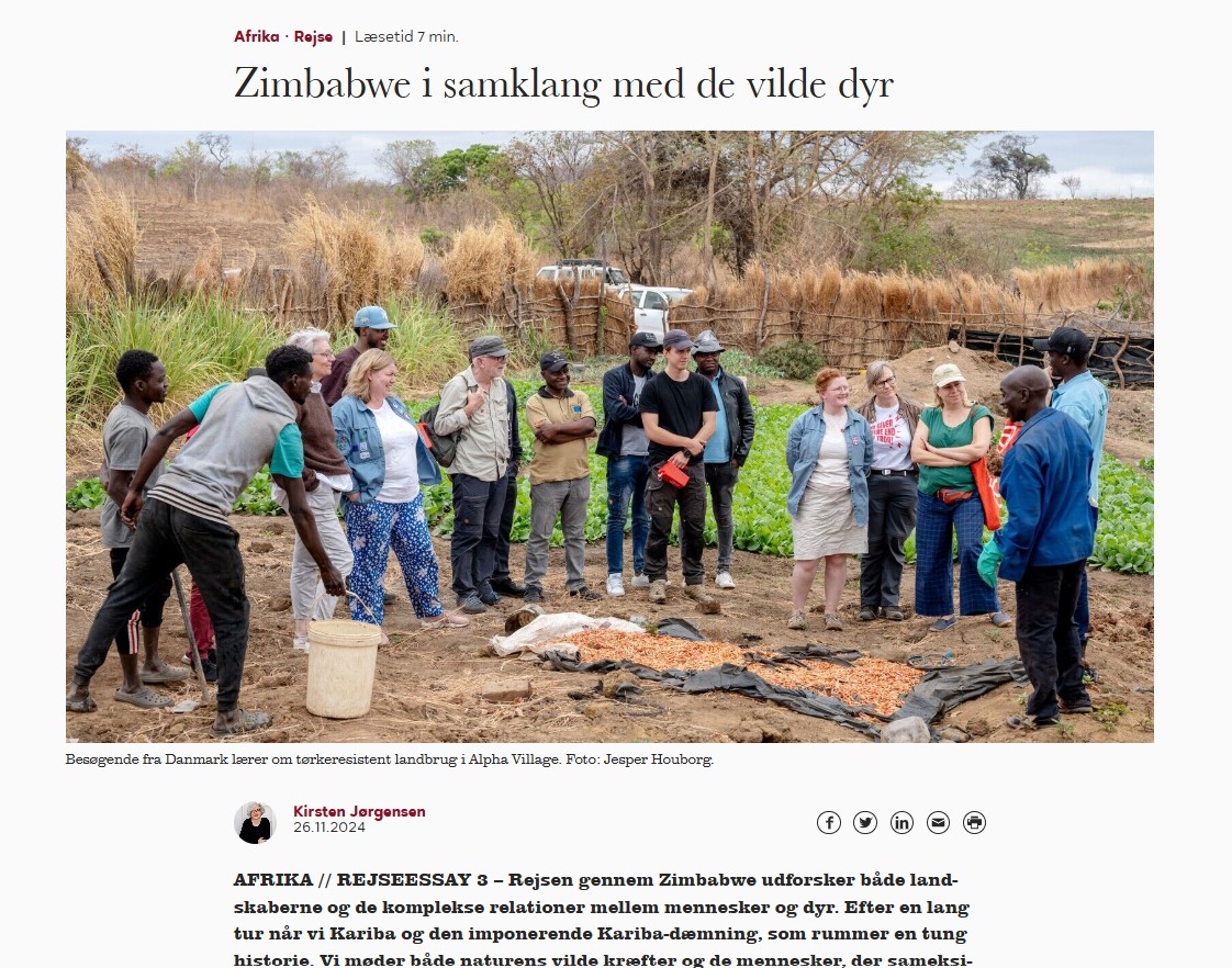 Så er jeg landet igen i præsteboligen på Ndr. Fasanvej. Sikke en omstilling fra det plagede og tørkeramte Zimbabwe til det våde og privilegerede Danmark. Hovedet er fyldt med en uges intense møder med zimbabwerne, naturen og dyrene. Møder med ekstrem tørke, en stærkt udfordrende politisk system og en kollapset økonomi. Men vi har mødt stærke mennesker, der med støtte fra bl.a. Folkekirkens Nødhjælp, Danida og en række lokale organisationer formår at skabe et liv for sig selv og fællesskabet. Vi ved, at der er mismod, resignation og håbløshed i landet, men har også set, at der kan gøres noget, og at det lykkes, når mennesker sætter sig for at ændre deres vilkår og får en smule hjælp til at komme i gang med det. Vi har bogstavelig talt haft fingrene nede i udviklingsprojekter, der nytter, fordi de er konkrete og praktiske og fordi Folkekirkens Nødhjælp arbejder sammen med lokale organisationer. Zimbabwerne har ikke brug for vores medynk eller barmhjertighed; de har brug for fantasifulde hoveder og aktive hænder, der er løsningsorienterede.