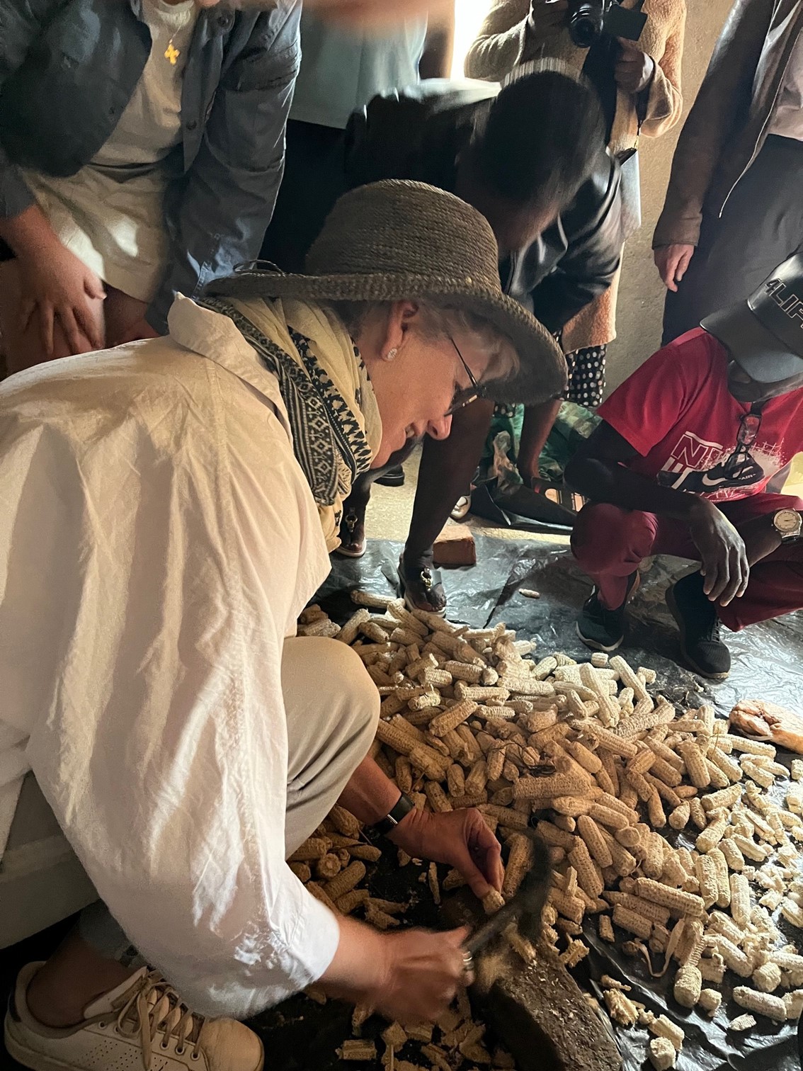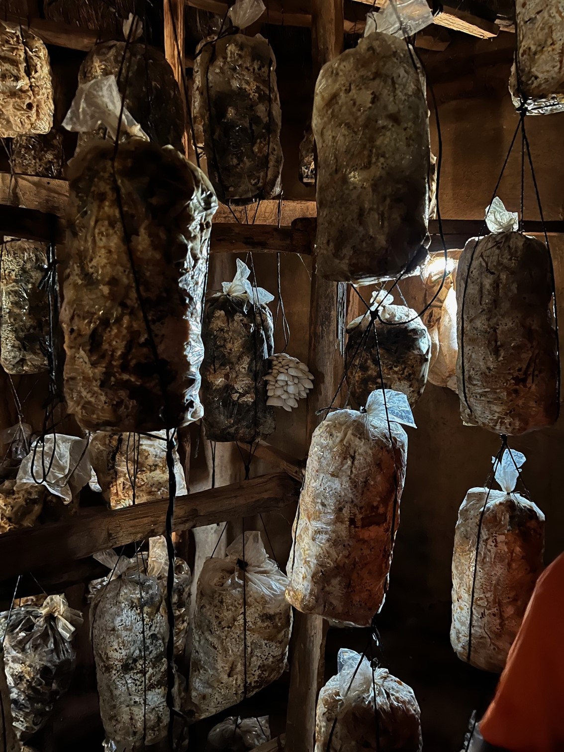 Det handler om østershatte. Vi besøger Pauline, som har skabt en blomstrende forretning, hvor hun og hendes to sønner producerer de lækre svampe. Vi bliver undervist i alle aspekter af den sindrige proces, hvor jordnøddeskaller, bomuldsrester, bønneskaller, majsblade og tørrede majskolber bliver til det miljø, som svampesporerne bor i. Vi hakker og væder og blander og fylder under stor munterhed poser med den masse, som svampene skal vokse i. Pauline har indrettet sin runde køkkenhytte til svampehus og det er magisk at se dem gro. Faktisk nærmest smukt. De kan sælges for 1 US dollar pr 200 gram og har forbedret Paulines levestandard betydeligt. Inden vi siger farvel, får vi en smagsprøve på østershatte stegt i margarine - de smager forrygende godt.