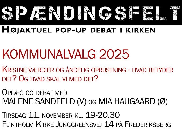 - Spændingsfelt ligger i regi af Folkekirken på Frederiksberg og er gratis at deltage i.
