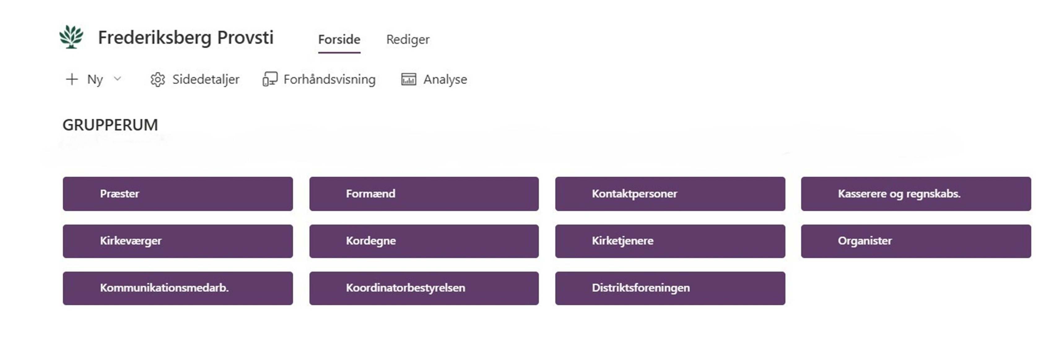Frederiksberg Provsti har grupperum på FIN for særlige arbejdsområder i Folkekirken på Frederiksberg. I hvilket grupperum finder man materialeliste fra revisor i forb. med årsafslutningen?